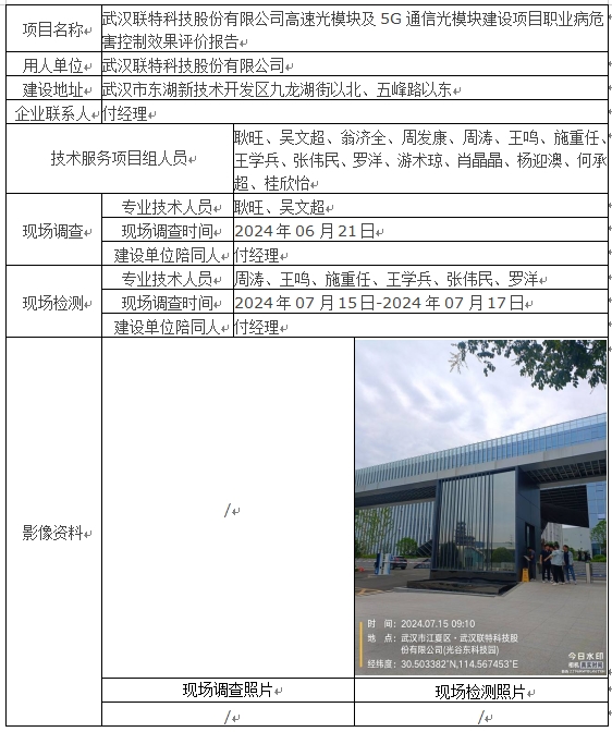 武漢聯特科技股份有限公司高速光模塊及5G通信光模塊建設項目