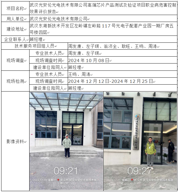 武漢光安倫光電技術有限公司高端芯片產品測試及驗證項目