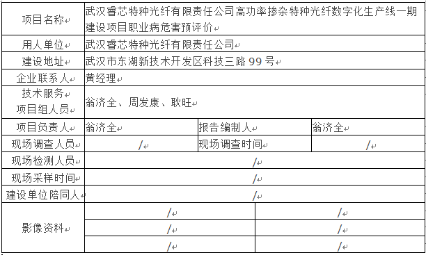 武漢睿芯特種光纖有限責任公司高功率摻雜特種光纖數字化生產線一期建設項目